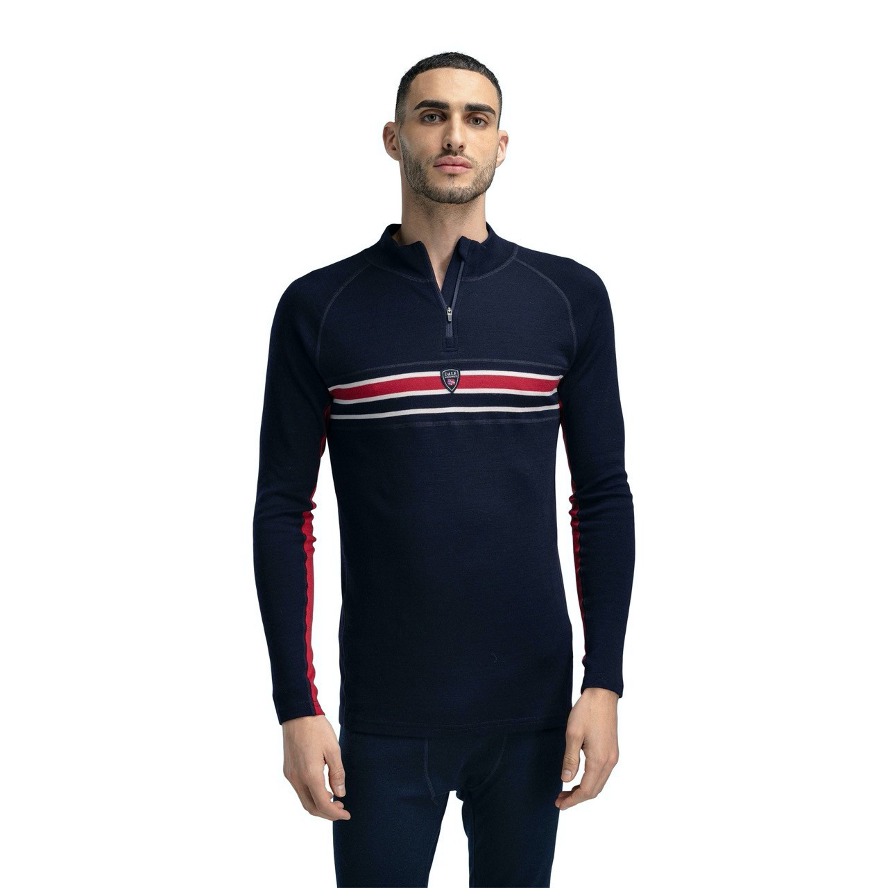 The Dale of Norway Aksla Baselayer Half-Zip is a sporty base layer wool sweater in soft merino wool. The sweater has a semi-high neck with a zipper. Side panels move the seams towards the front and back, providing a more shaped fit and creating maximum comfort during activity. Flat seams prevent friction against the skin when moving. The underarm panels are knitted in a contrasting color. Aksla sweater works both as a base layer and as a thin next-to-skin sweater. Responsible Wool Standard certification (RWS) ensures that the wool in this garment is responsibly produced. The certification has requirements for animal welfare (including a ban on mulesing), working conditions, and that production safeguards biodiversity and sustainable operation of the soil. The sweater is inspired by our Lahti men's sweater, which was the official World Championships sweater for the Norwegian cross-country skiing team in Lahti in 2017. It takes its name from the Aksla mountain, which is right in the middle of Ã…lesund. With its 418 steps to the summit, the city mountain is a popular arena for interval training for the city's residents.