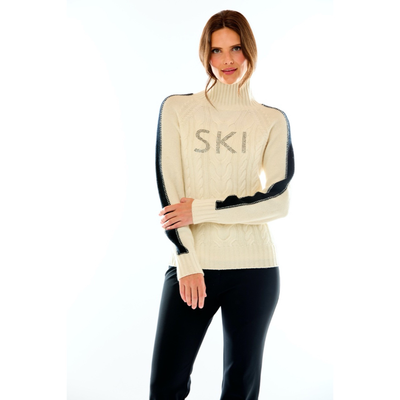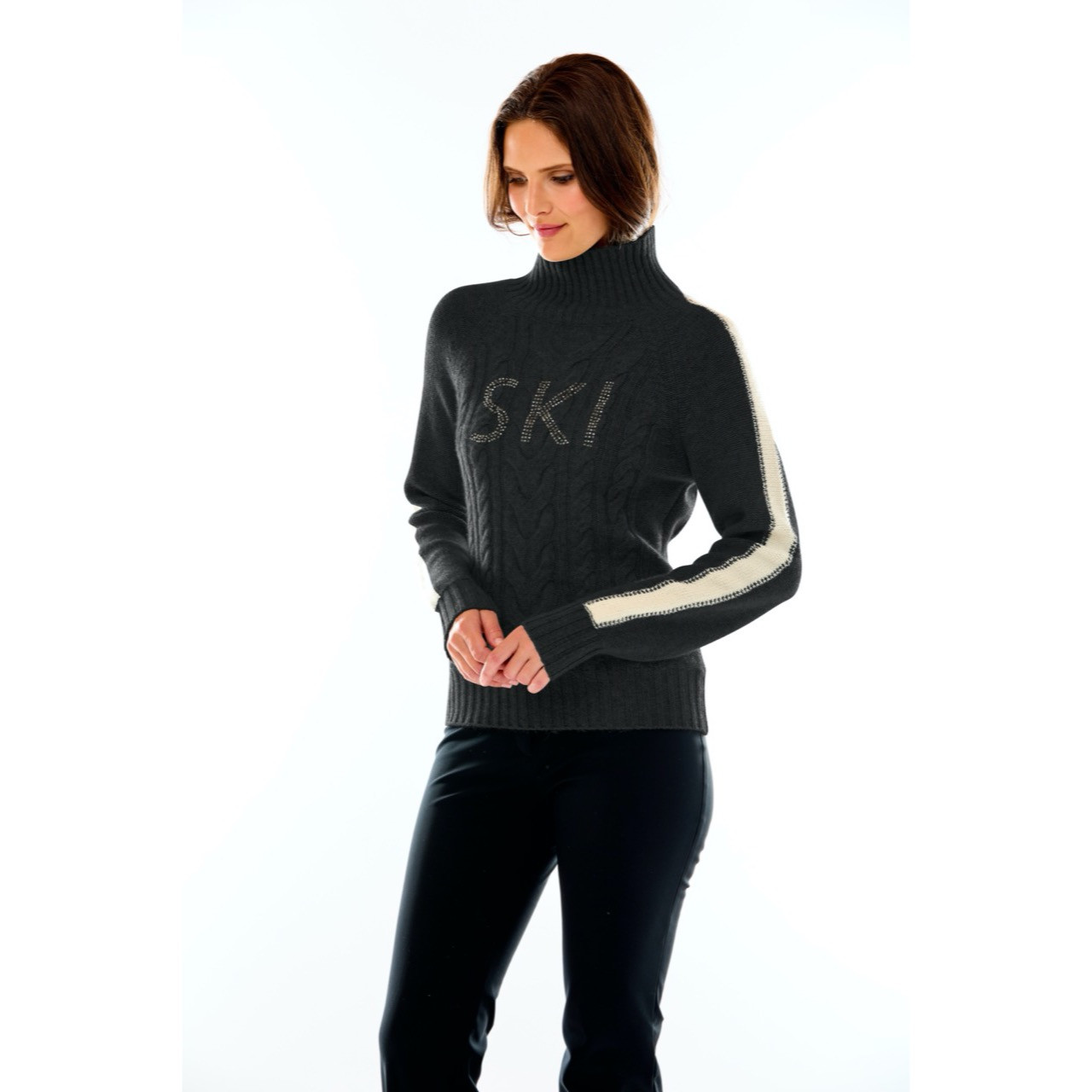 Mark Miller Elle Crystal Stripe Sweater combines luxurious comfort with eye-catching winter style, crafted from premium soft-touch yarn for breathable warmth and all-day comfort. The elegant crystal stripe detailing adds refined sparkle to a classic silhouette, making it perfect for both après-ski outings and everyday winter wear. With a relaxed yet flattering fit, this sweater pairs effortlessly with jeans, leggings, or layered under jackets — bringing a polished, alpine-inspired look to any cold-weather wardrobe.